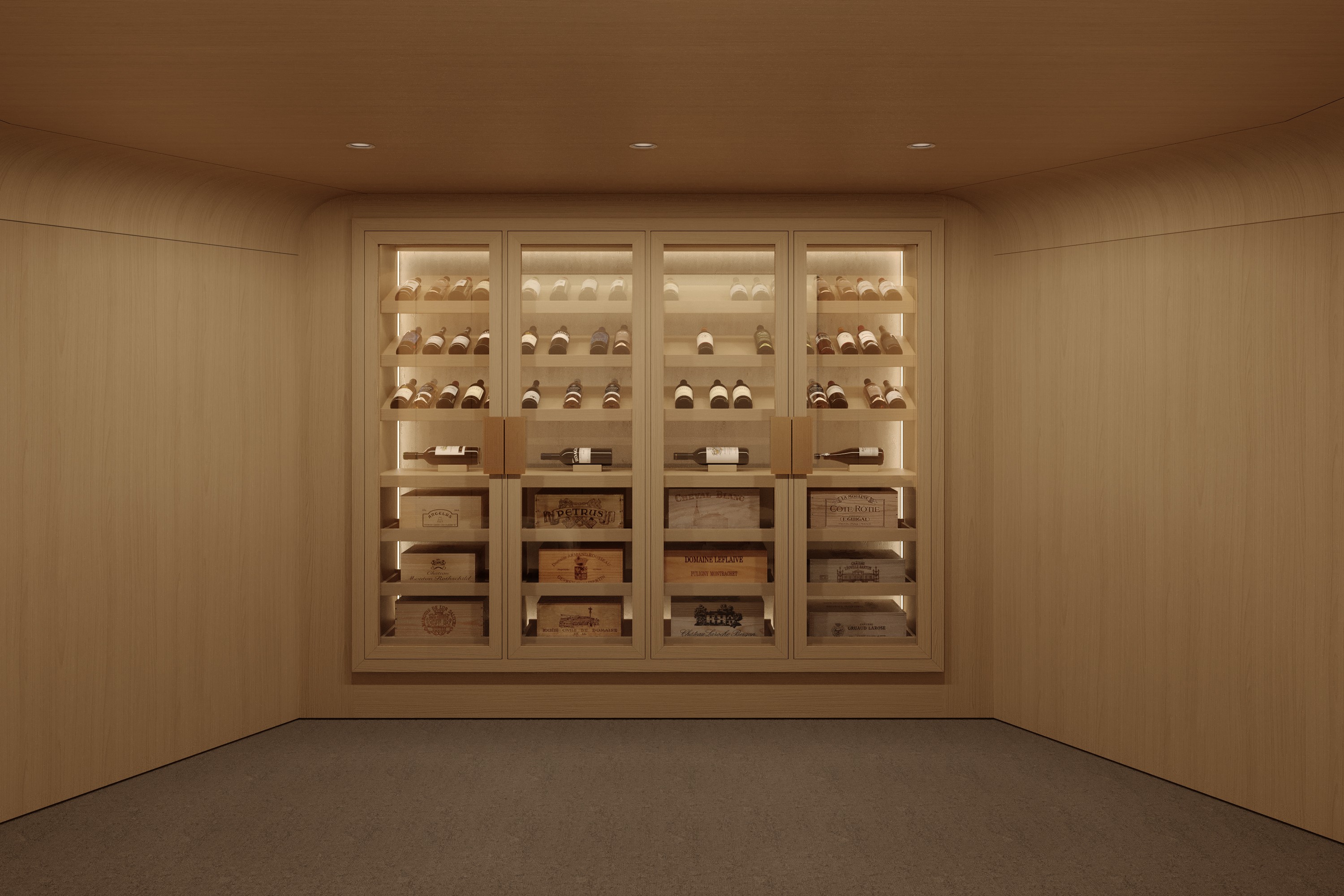 Designed as integral parts of the home, our high-end custom wine cellars blend harmoniously into private interiors while ensuring precise, stable, and long-lasting storage conditions for wine collections.